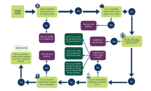 So, let’s imagine that you’ve suddenly come into some extra cash. For simplicity, we’ll say $1,000. This could be a holiday gift, a year-end bonus, or a refund at tax time. Where does a financially savvy NextGen investor put a modest windfall? The answer really depends on the individual’s unique circumstances, but the flow chart below can help you make decisions and illustrates some of the logic the Nexus Wealth Planners use when making recommendations.